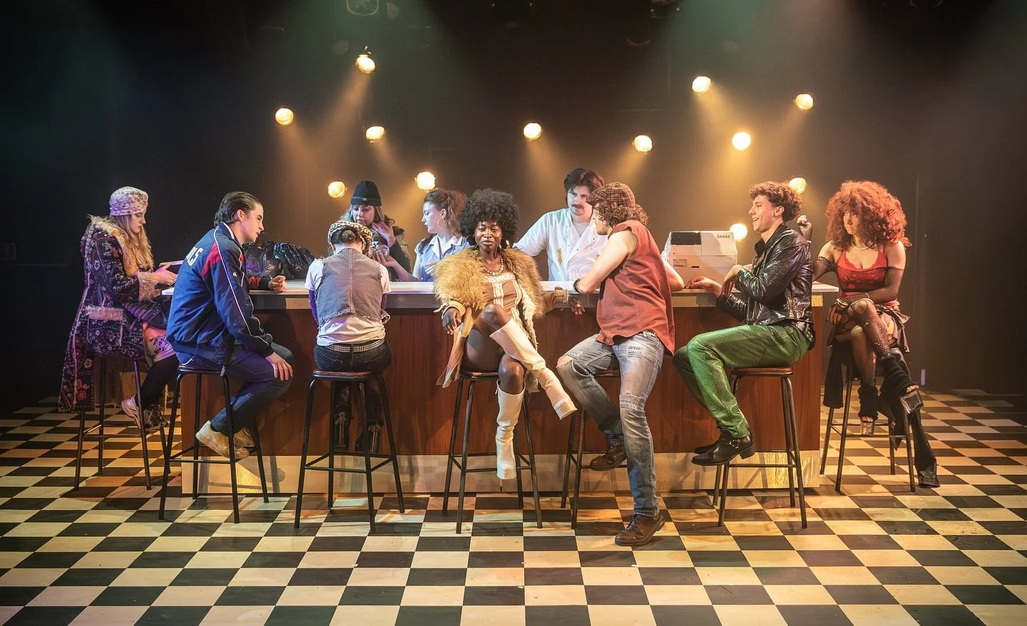 “This cast looks very cool and au point fashion-wise, a band of raggle-taggle street brats whose style is a punky mash-up of Adam Ant, Sid Vicious/Vyv Basterd, Roxy Music lounge lizard, and Jean Paul Gaultier-meets-Jean Genet, with a touch of Rocky Horror thrown in. Bravo to designer Hugo Dodsworth for his amusing stylistic nods to all those sources.
